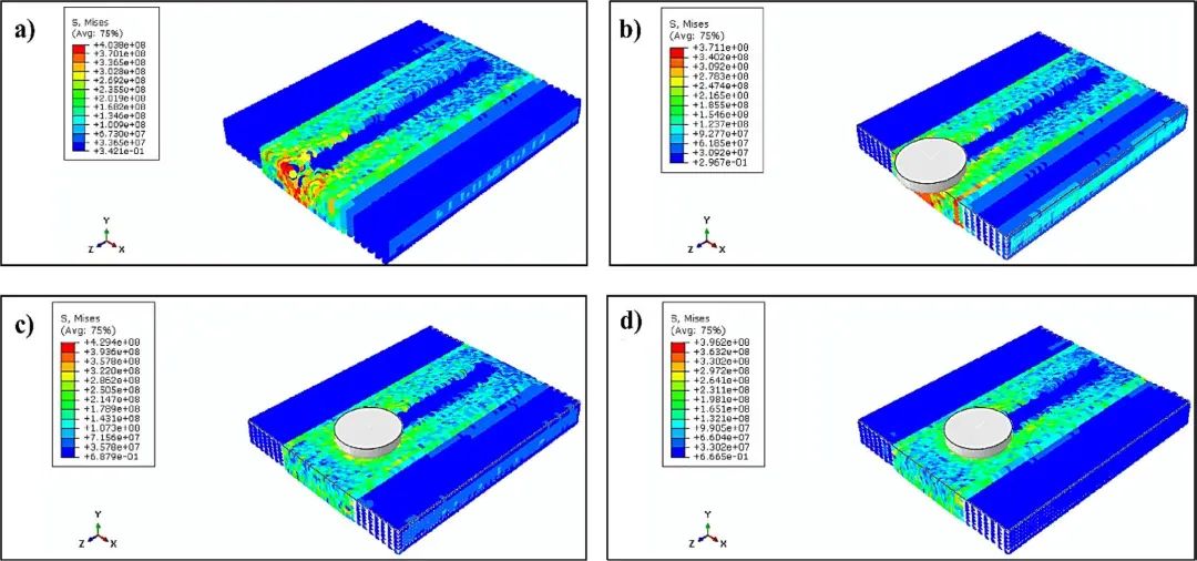 通過將超聲波檢測(cè)結(jié)果與SPH模型模擬結(jié)果進(jìn)行比較,發(fā)現(xiàn)模擬的殘余應(yīng)力與實(shí)驗(yàn)測(cè)得殘余應(yīng)力具有很好的一致性,表明該模型能夠準(zhǔn)確預(yù)測(cè)攪拌摩擦焊AZ91的殘余應(yīng)力分布(圖5)。