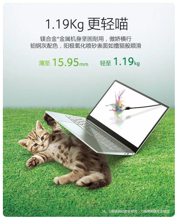 鎂合金作為最輕的工程金屬材料,被譽為“21世紀的綠色工程材料”,鎂合金的密度為 1.74-1.85g/cm3、比鋁合金輕36%、比鋅合金輕73%、僅為鋼的1/4左右,因而其比強度和比剛度較高,另外具有優(yōu)良的阻尼性、電磁屏蔽性、減振性、切削加工性和拋光與表面處理性能。從鎂合金的性能特點來看,選材符合目前筆電的輕薄風格。缺點:耐蝕性差,燃點低,材料強度偏低,另鎂很活潑,表面易氧化,如要實現(xiàn)高光效果,非常之難。如下為宏碁Swift3采用全新鎂合金材質(zhì),其中A/D面為鎂鋰合金,C面為鎂鋁合金。